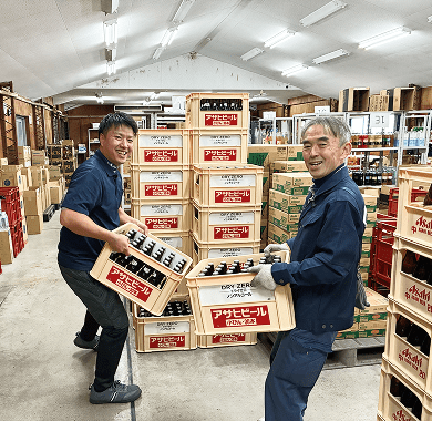 酒屋の配送担当として、飲食店様および個人のお客様へ商品をお届けしております。